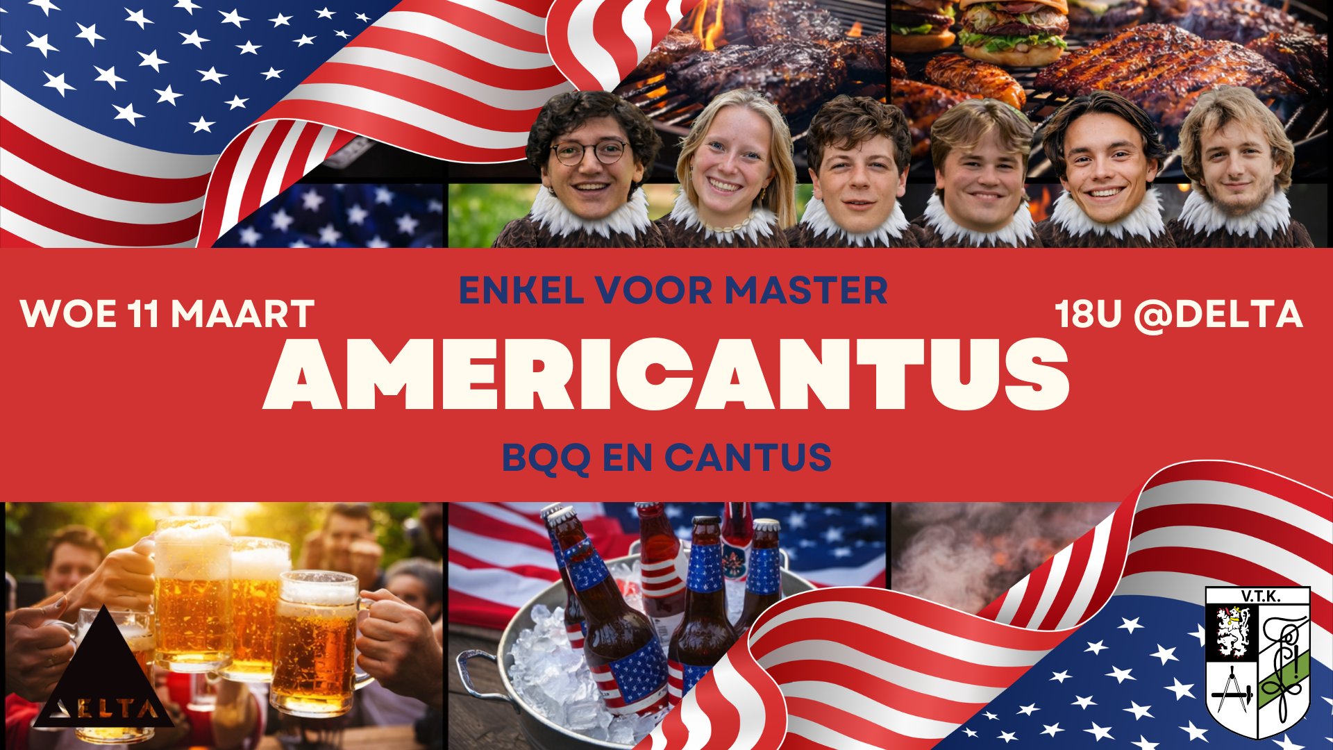 Kom op woensdag 11 maart mee genieten van een onvergetelijke Americantus! We starten de avond met een heerlijke BBQ, gevolgd door een legendarische cantus volledig in Amerikaans thema. Verwacht lekker eten, ijskoude pinten en luidkeels gezang met een American twist.